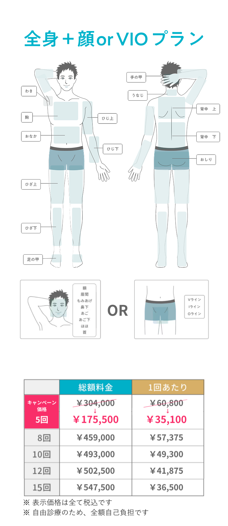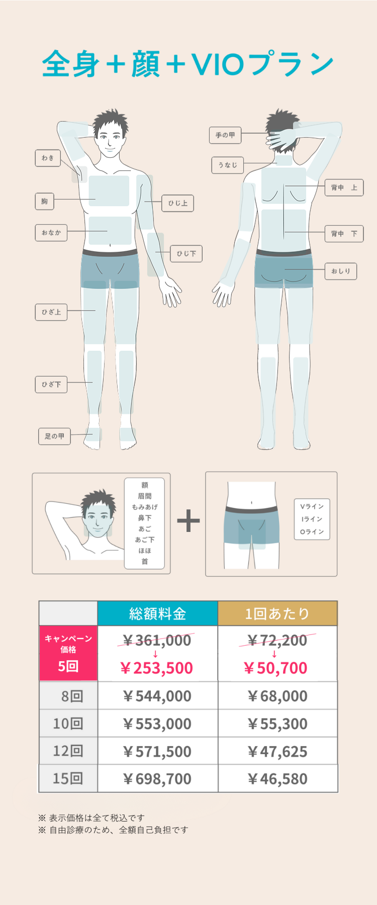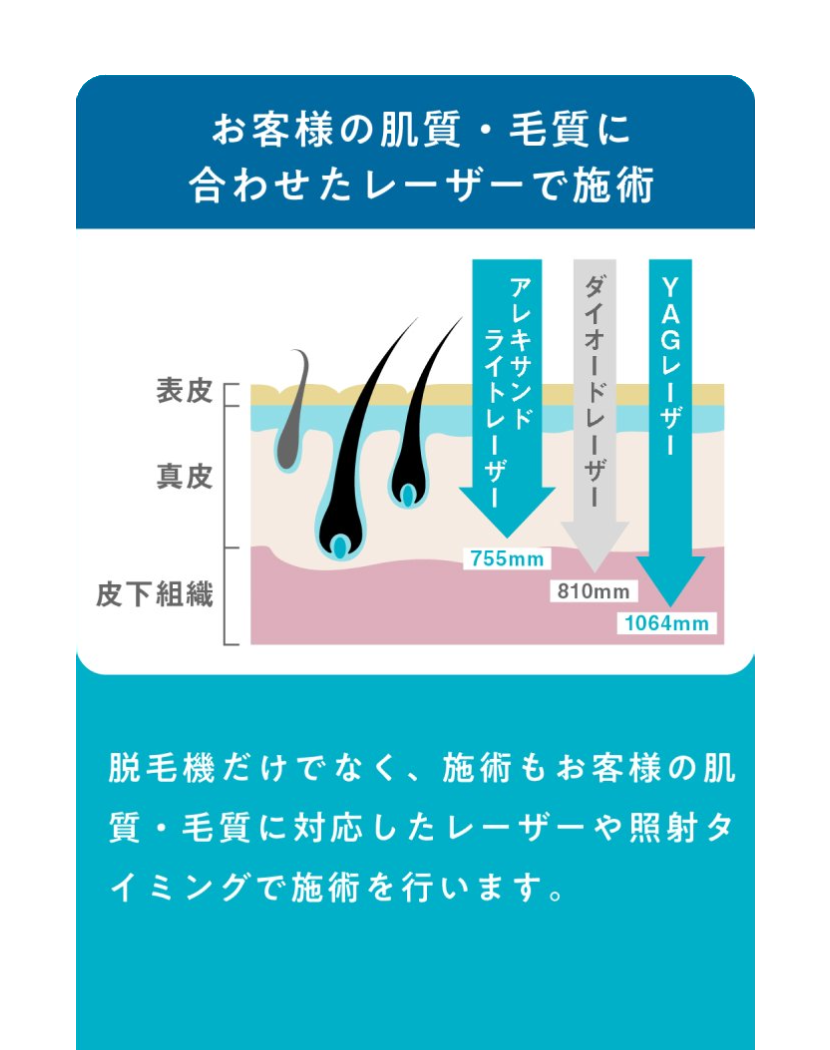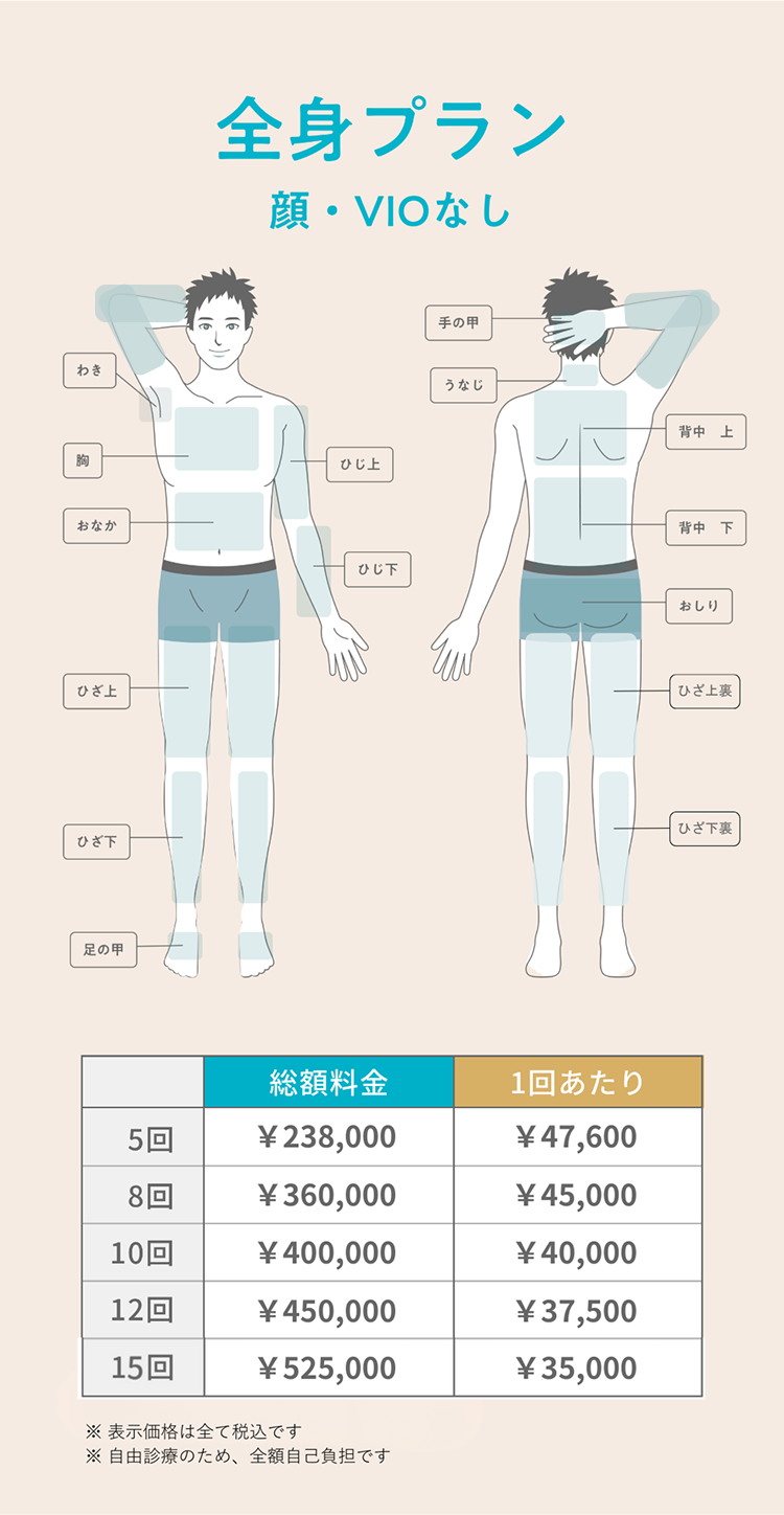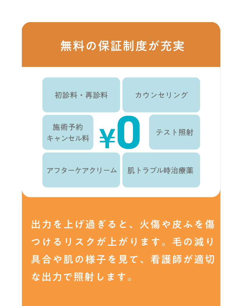 脱毛料金以外の追加料金はかかりません。施術が原因で肌トラブルが生じた場合、無料にて診察、薬の処方を行います。