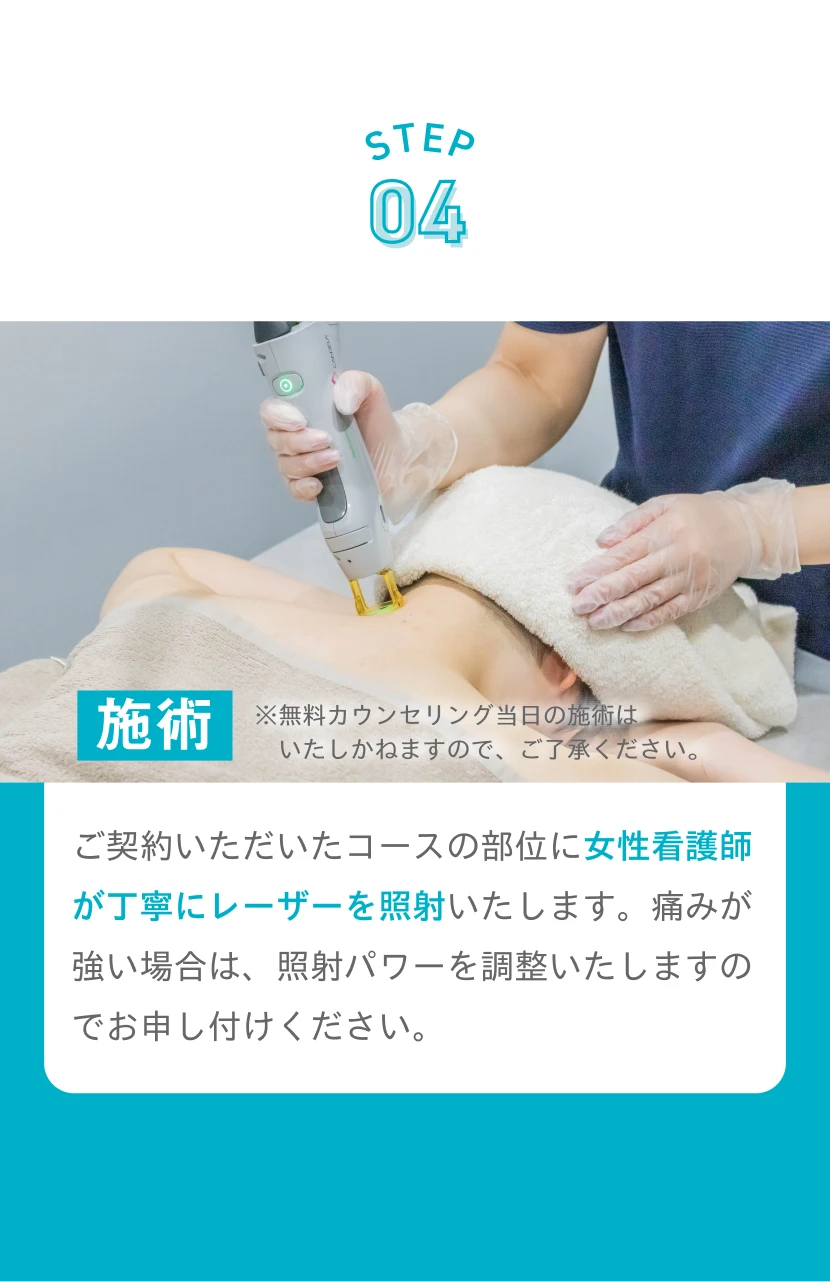 照射漏れにつきましては、照射後28日以内にご来院いただき、ドクターの診察後、照射漏れと判断した場合は無料にて再照射可能です。